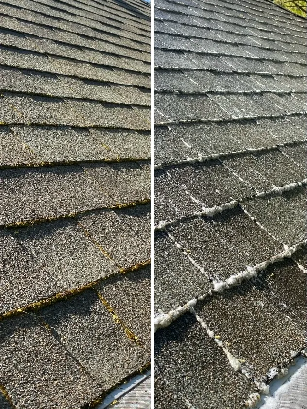 - Moss, Algae, or Fungi Growth: While some moss or algae growth on a roof may seem like a minor aesthetic issue, it can lead to more serious problems over time. Moss, algae, and fungi can trap moisture on your roof’s surface, which accelerates the deterioration of your shingles and underlayment. It’s important to regularly clean your roof to prevent these growths from causing long-term damage.