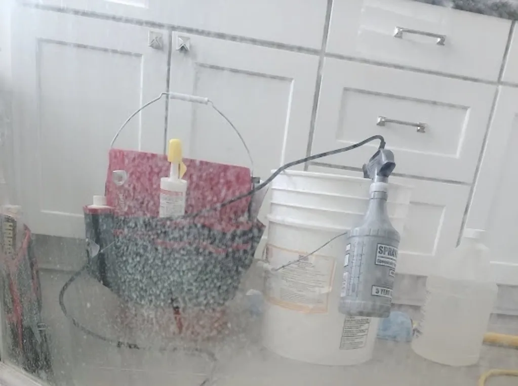This step is crucial for removing tough hard water build up inside scratched glass and makes maintaining your shower glass a breeze! No more soap scum or hard water build up and no more squeegeeing required!